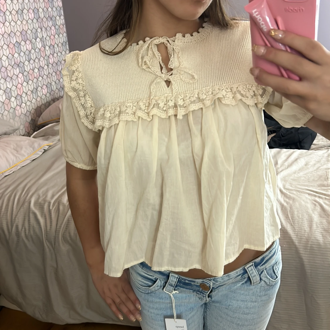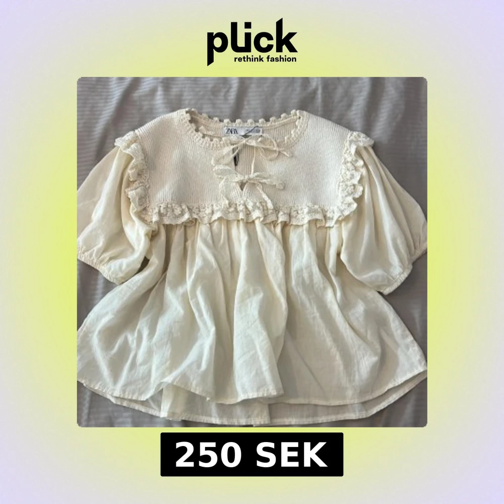 Supersöt krämvit blus från Zara med stickad överdel i storlek S❤️