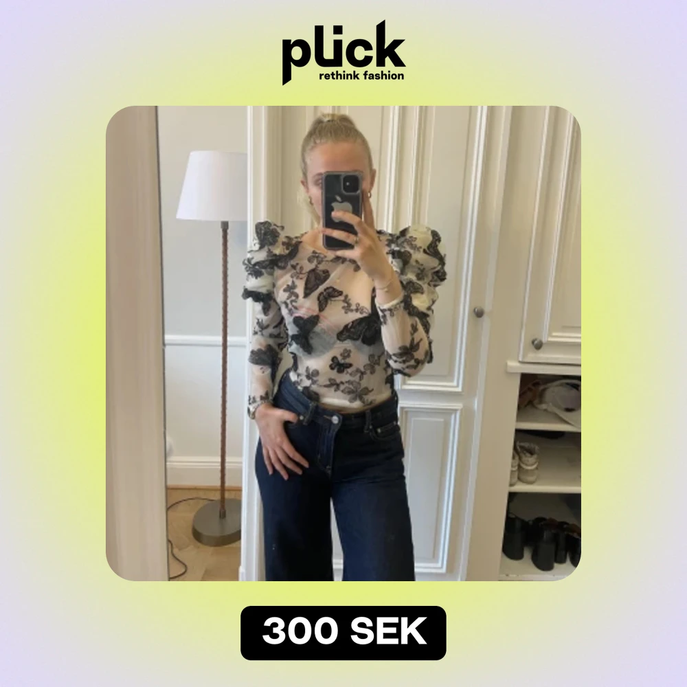 Elegant spetstopp från Shk Paris. Tyll med svarta spetsfjärilar. Dragkedja i ryggen. Storlek S. Säljer då jag knappt använt den. 💕