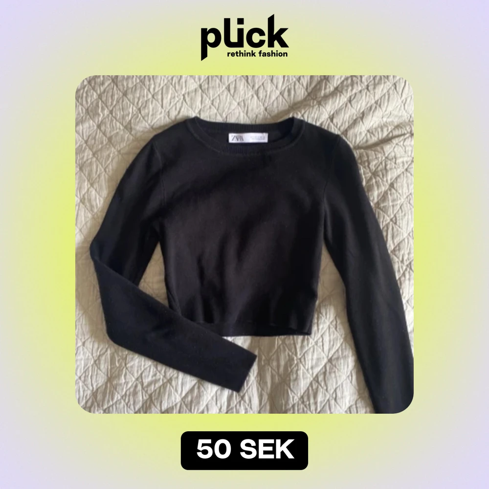 Basic svart Crop top, väldigt snygg till ett par jeans! Använd men i bra skick!