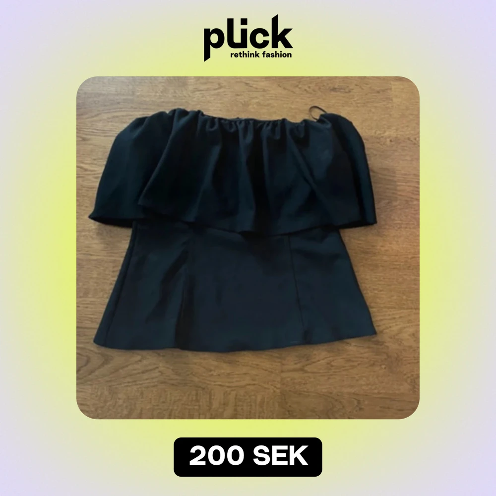 Snygg svart offshoulder topp med volangdetaljer. Perfekt för en utekväll eller fest. Toppen är i nytt skick och har en elegant och stilren design. Passar bra till både jeans och kjol.