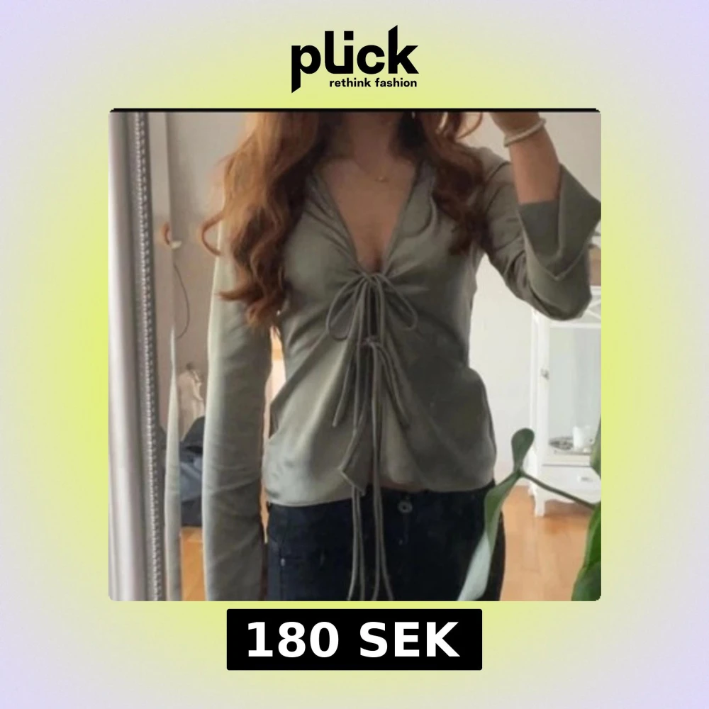 Snygg grå/grön fest topp med djup v-ringning och långa ärmar. Toppen har flera knytband framtill. Mycket bra skick perfekt nu till sommaren