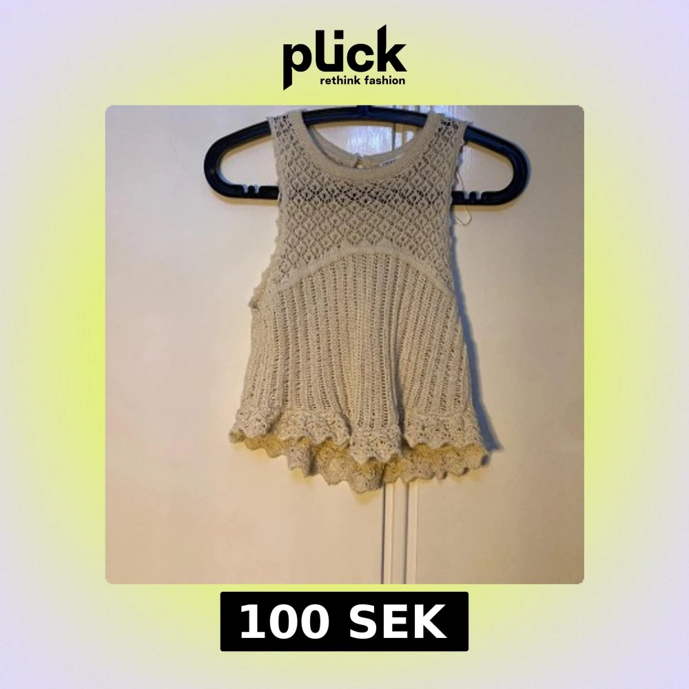 Säljer en beige stickad topp från Zara med ett vackert hålmönster. Toppen är ärmlös och har en volangdetalj vid nederkanten. Perfekt för varmare dagar!