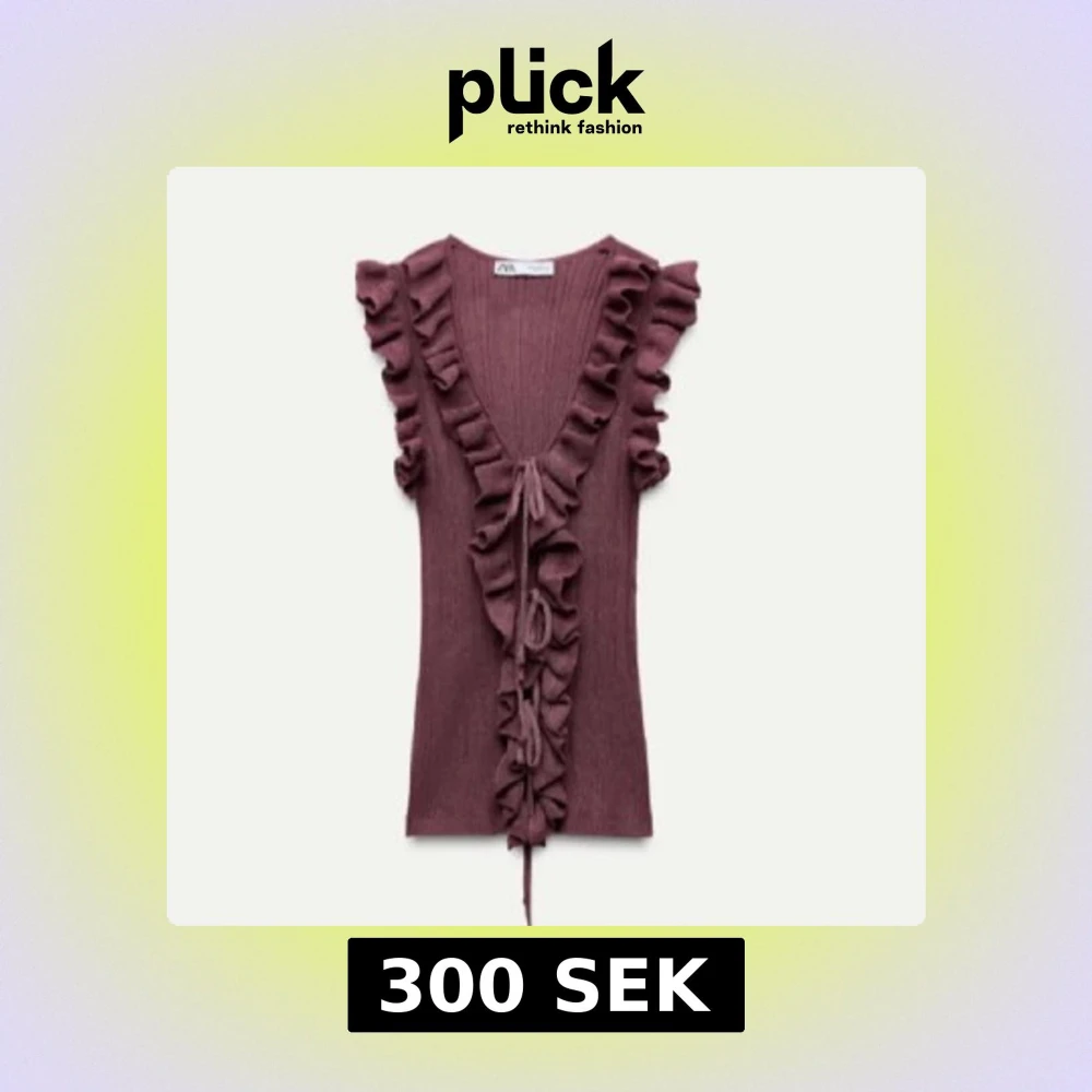 Intressekoll på min söta vinröd/lila? ribbad topp från Zara med volangdetaljer och knytning framtill. Skriv om ni vill ha fler bilder så fixar jag!❤️endast använd när jag provade den. Pris går att diskutera💗