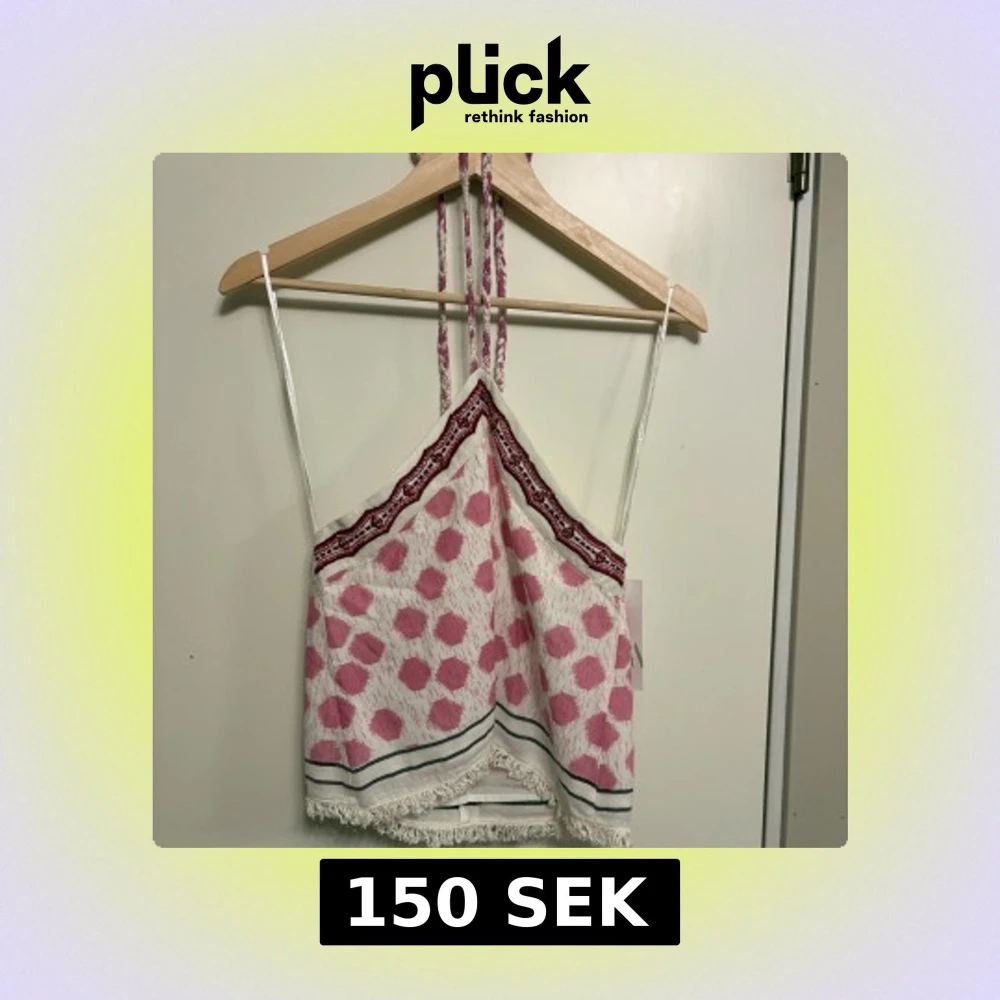 Säljer en söt linnetopp från Zara i storlek XS. Toppen har rosa prickigt mönster, tunna axelband och knyt i nacken. Dekorativa band och fransdetalj nedtill. Perfekt för varma dagar! Dessutom aldrig använd, prislapp sitter kvar.