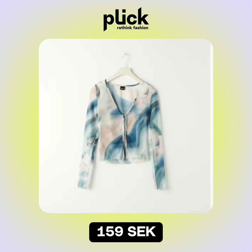 Säljer en superfin långärmad topp med ett abstrakt mönster i blått, rosa och beige. Toppen har en v-ringad design med knyt framtill och är perfekt för både vardag och fest. Materialet är lätt och bekvämt, vilket gör den idealisk för vår och sommar.