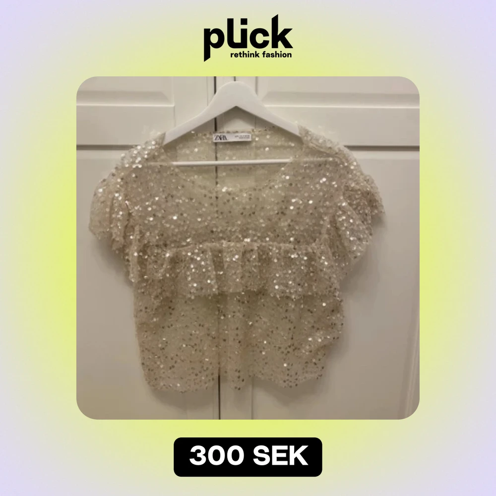 Supersöt glittertopp från Zara. Toppen är i storlek S och är i väldigt bra skick! Köptes för flera år sedan så går ej att få tag på längre, och säljs pga att det inte kommer till användning💓