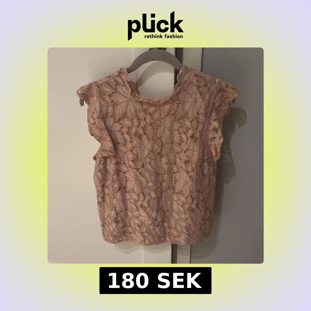 Säljer en söt rosa spetsblus med volangdetaljer. Blusen är ärmlös och har ett vackert blommönster. Perfekt för en somrig look!