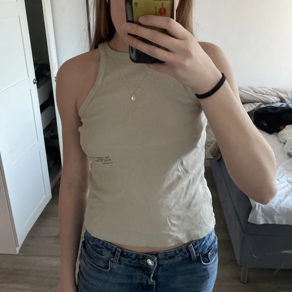 Ribbad topp från hm med text, aldrig använd🤍