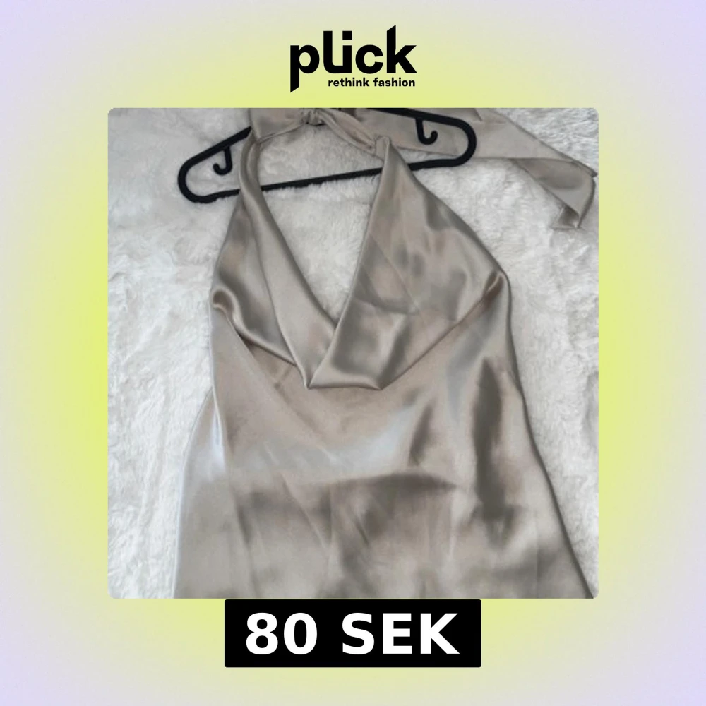 Snygg halterneck topp från Zara i champagnefärgad satin. Toppen har omlottknytning i ryggen och en draperad v-ringning framtill. Bild 4 visar: jag har klippt av lite av innertyget framtill då jag tyckte de va för mycket tyg och det föll snyggare utan de. Annars är toppen i perfekt skick! (Alltså inget som syns när man har den på sig)