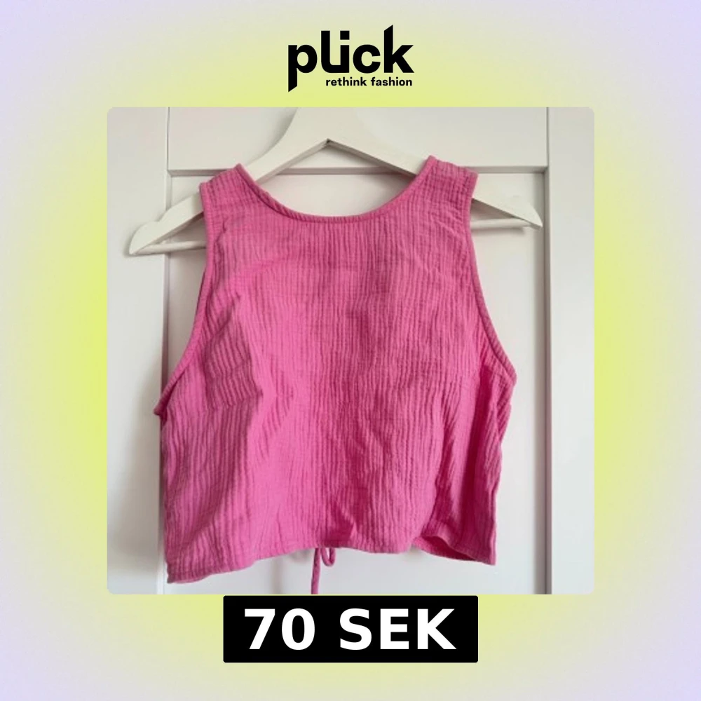 Säljer en söt rosa ärmlös linnetopp med knytning i ryggen från Zara i storlek L, men är ganska liten i storlek så passar S-M.