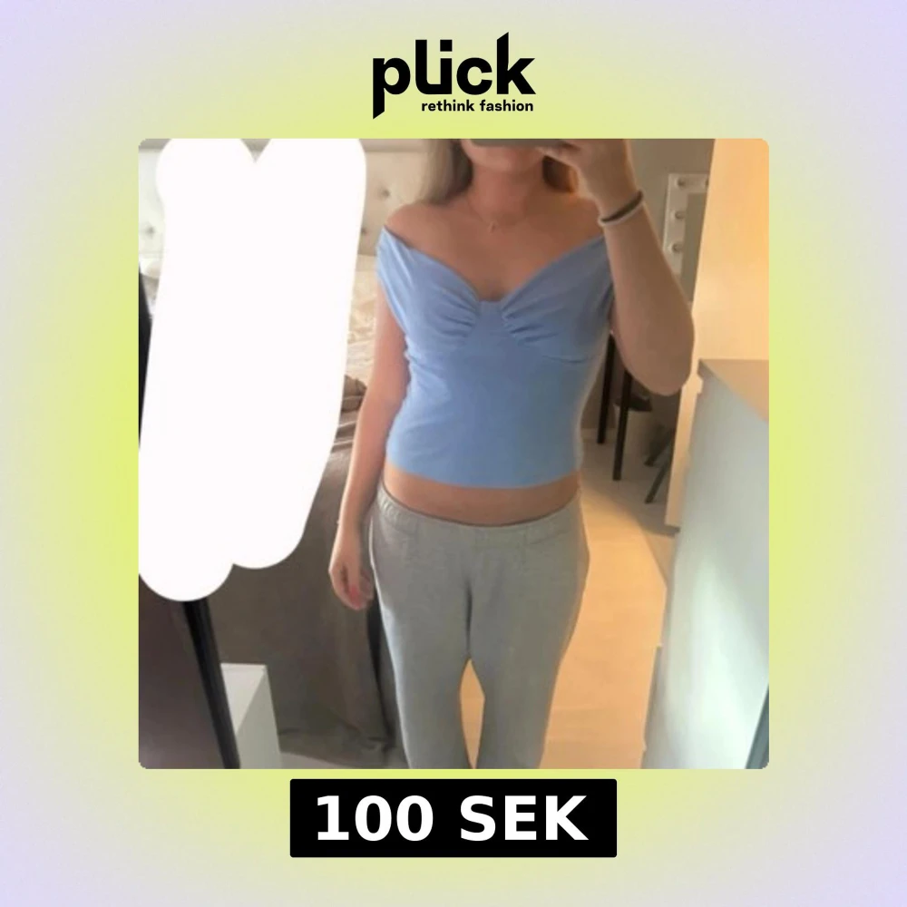 Supersöt ljusblå offshoulder topp från Zara med snygg rynkdetalj vid bysten. Toppen är croppad och har en figurnära passform som framhäver axlarna. Perfekt för varma dagar eller när du vill ha en chill men ändå trendig look.