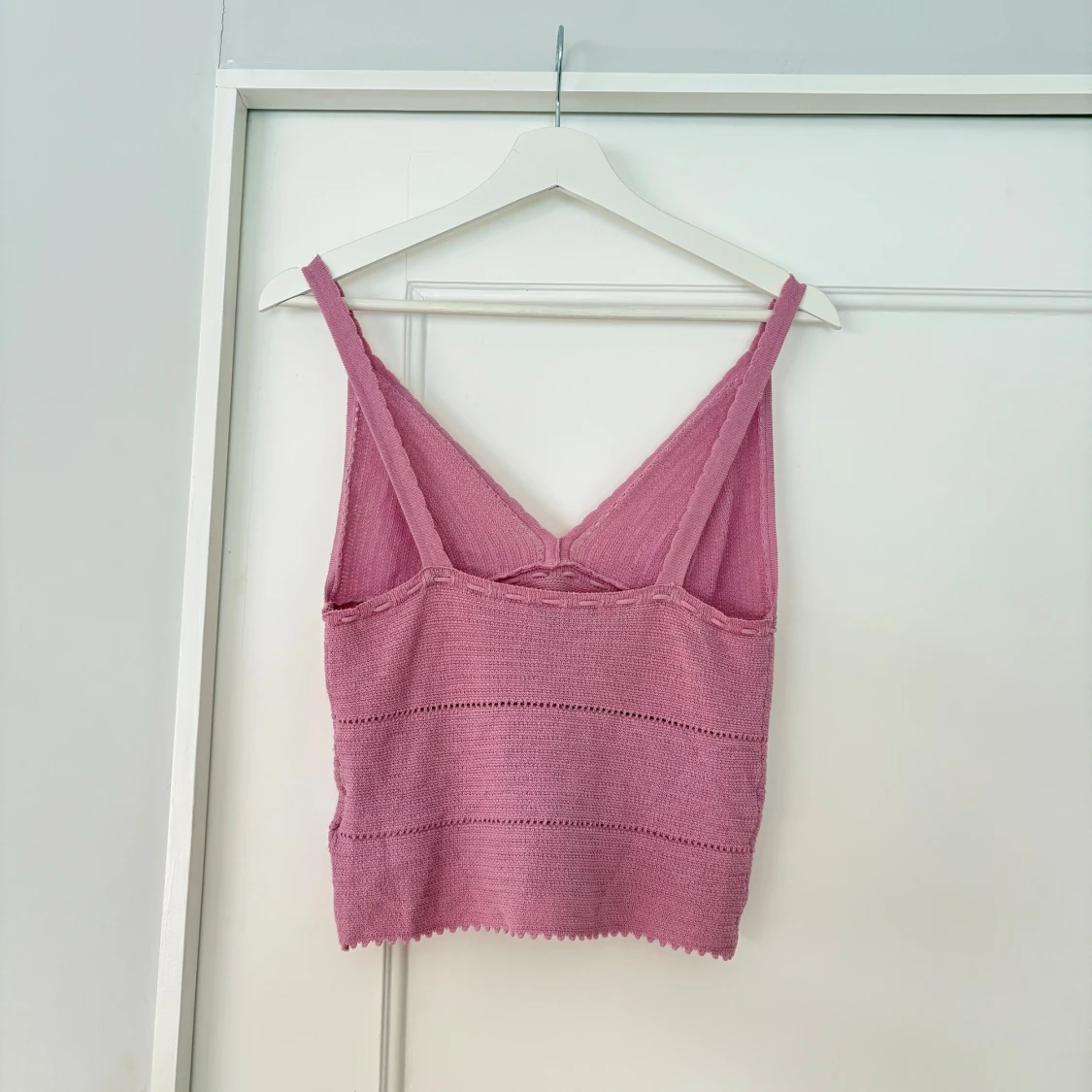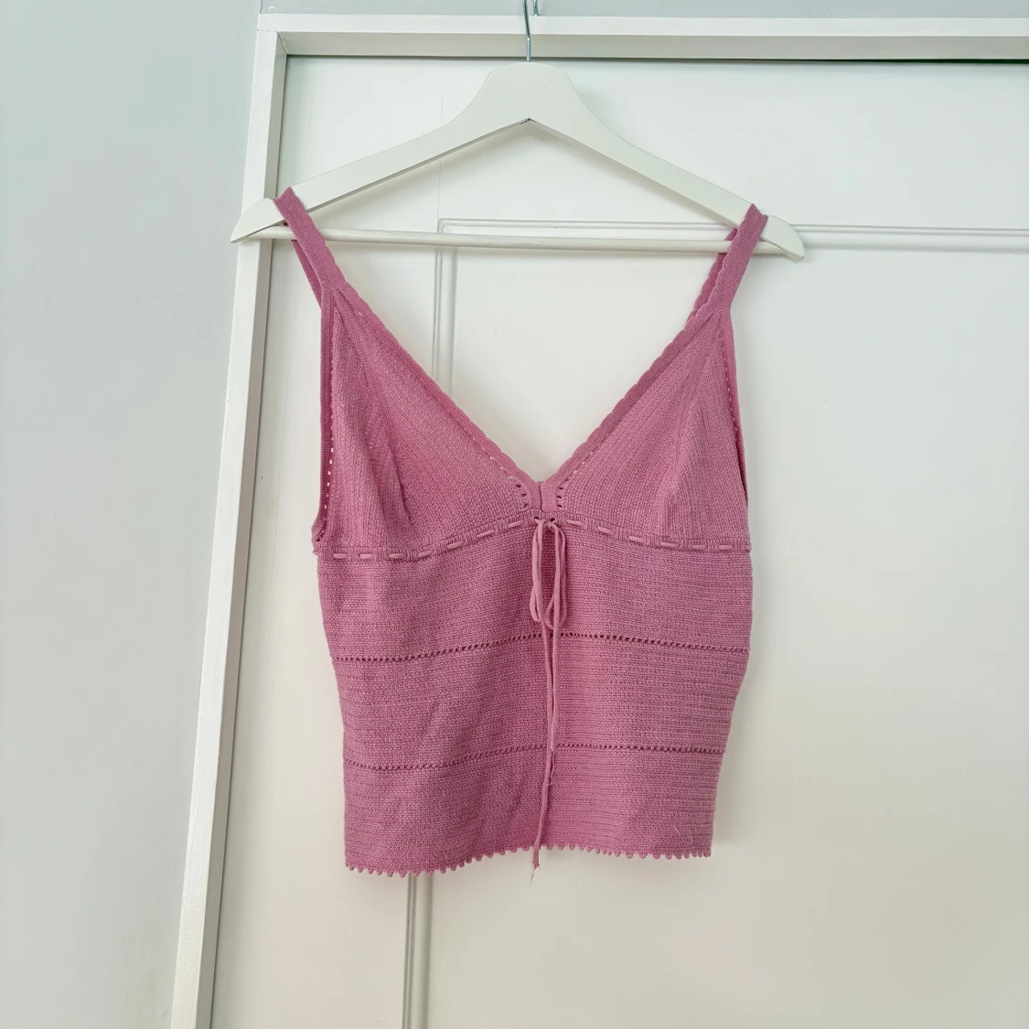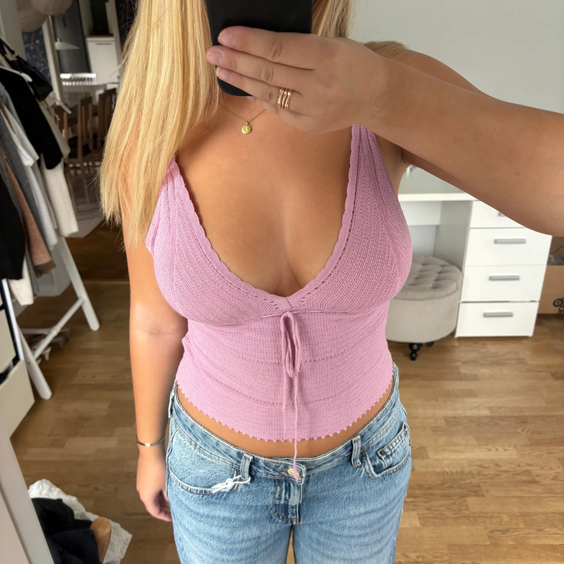 Superfin ljusrosa stickat linne med smala axelband och v-ringning. Toppen har en söt snörningsdetalj framtill. Från Zara i storlek M.