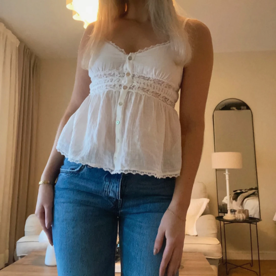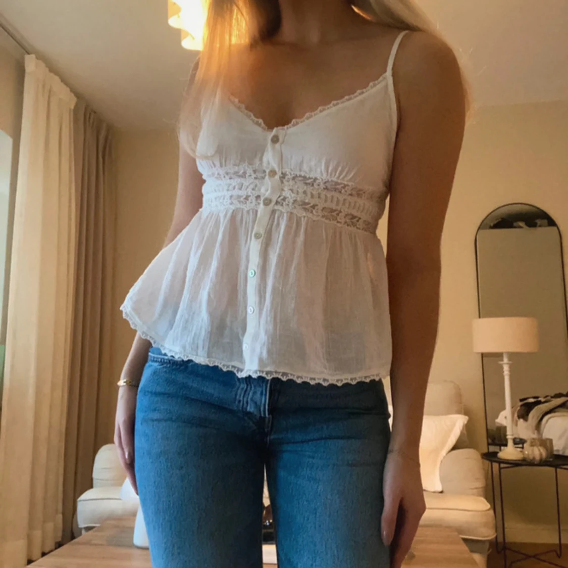 Supergulligt linne med spets frĂ„n Zarađ sparsamt anvĂ€nd sĂ„ i vĂ€ldigt bra skick! Storlek S