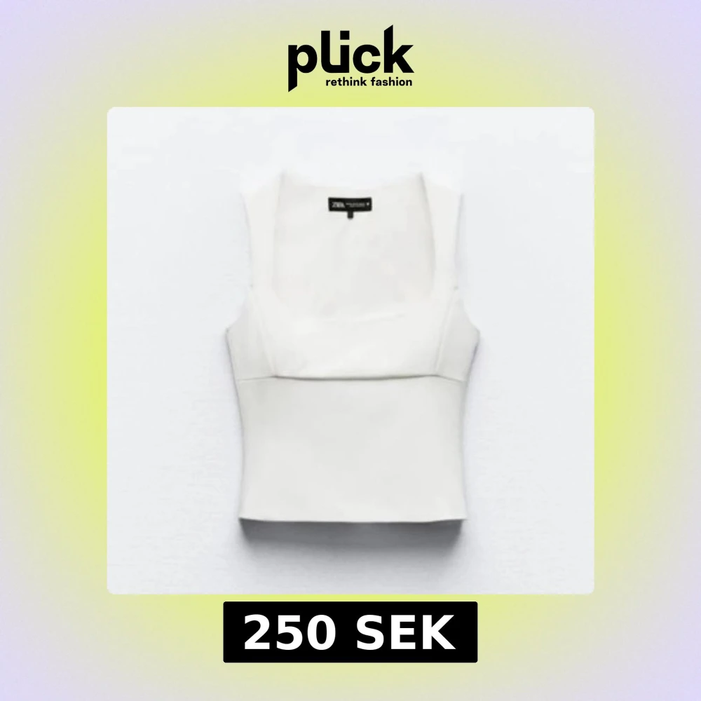 Snygg vit topp från Zara med fyrkantig urringning och breda axelband. Perfekt för att styla med jeans eller kjol. Enkel och stilren design som passar till många olika looks.