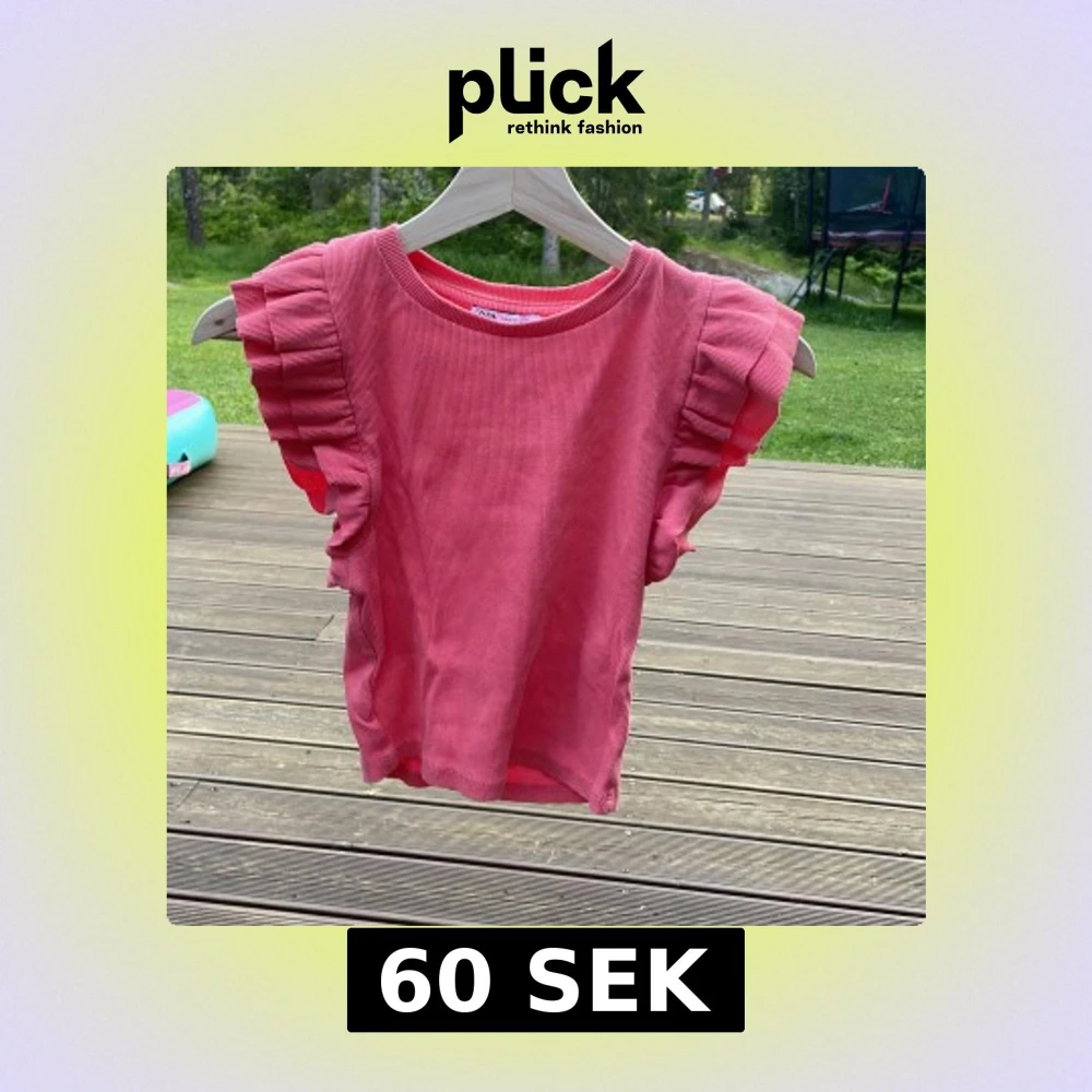 Supersöt rosa topp från Zara med breda volangärmar som ger en extra cool touch. Toppen är ribbad och har en rak passform med rund halsringning. Perfekt för dig som vill sticka ut lite extra med detaljerade ärmar och en härlig färg. Själv skulle jag säga att den ör i stl xxs-xs eller 135-140