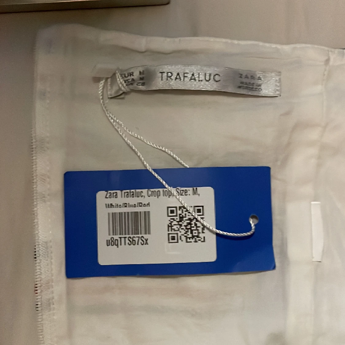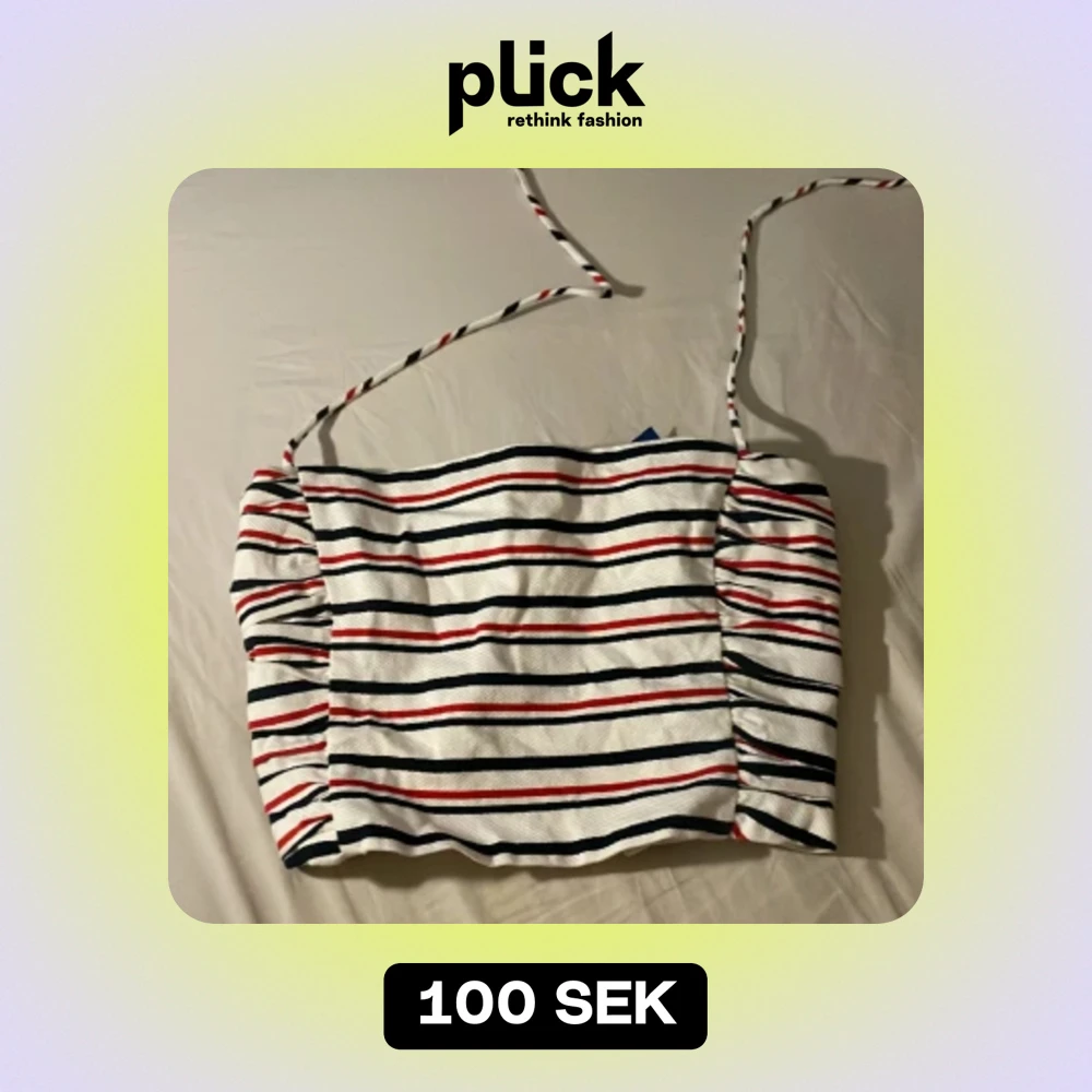 Trafaluc collection Zara top från Sellpy som aldrig anväds efter köp. Knytband i nacken. Vit med röda och blåa ränder