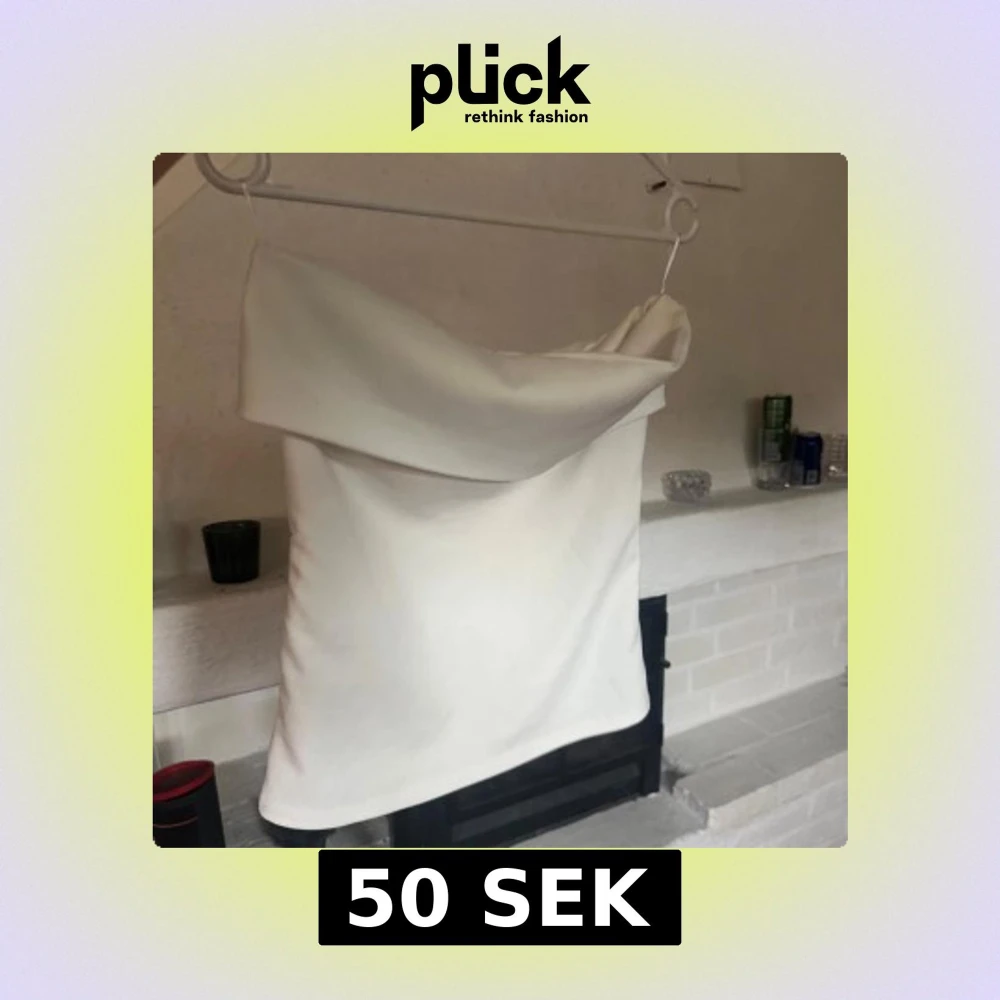 Säljer en stilren vit tubtopp med bred, vikt kant upptill och dragkedja längs sidan.