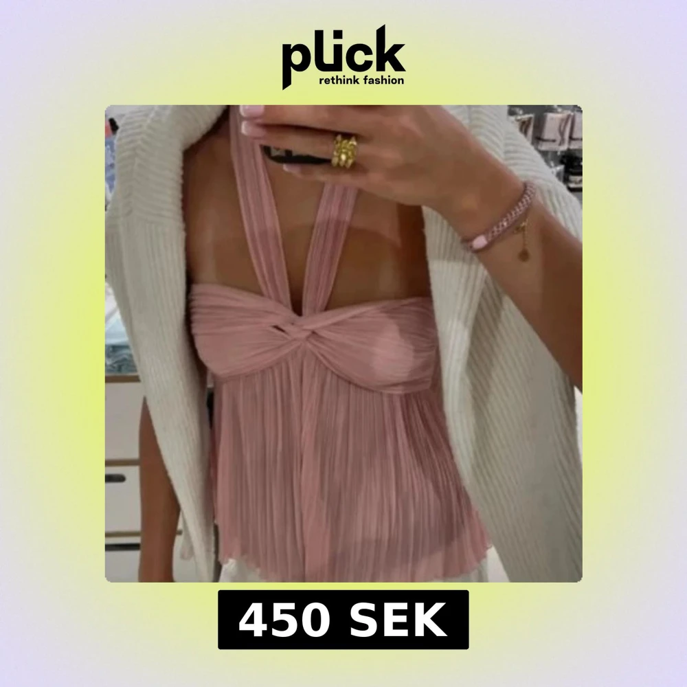 Säljer en superfin plisserad rosa halterneck topp med twistad detalj framtill. Storlek M men passar mig som bär storlek S💕