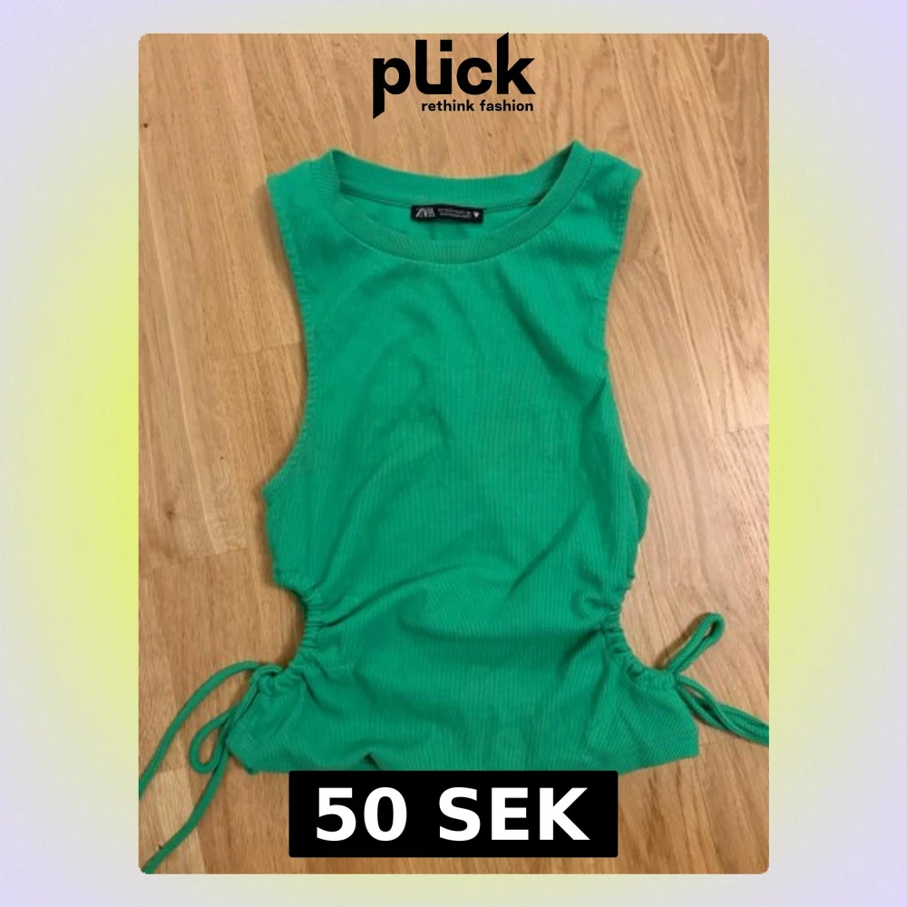 grön ribbad linnetopp från Zara med stripade snörningardsdetaljer i sidorna. Toppen är i storlek M