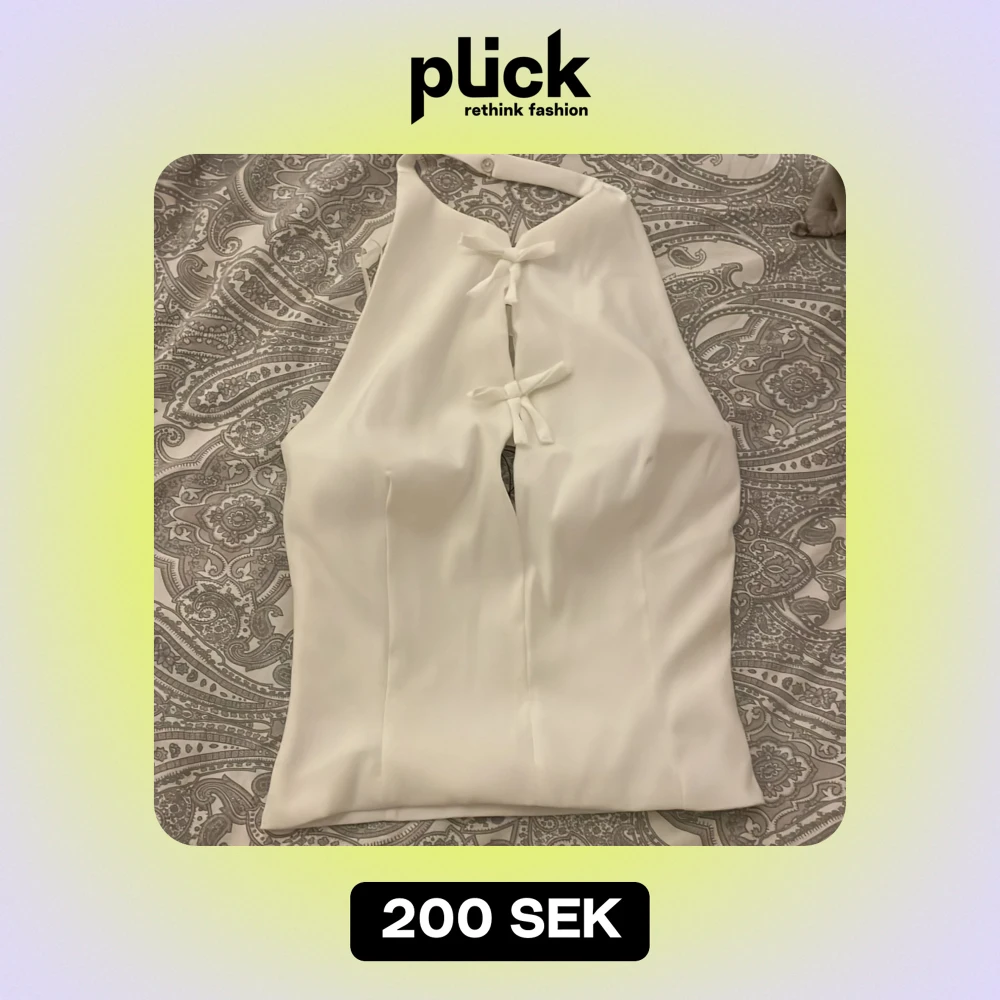 Säljer en stilren vit ärmlös topp från Zara i nytt skick. Toppen har en halterneck-design med två dekorativa knytband framtill. Perfekt för sommardagar eller festliga tillfällen. Materialet känns mjukt och bekvämt mot huden.