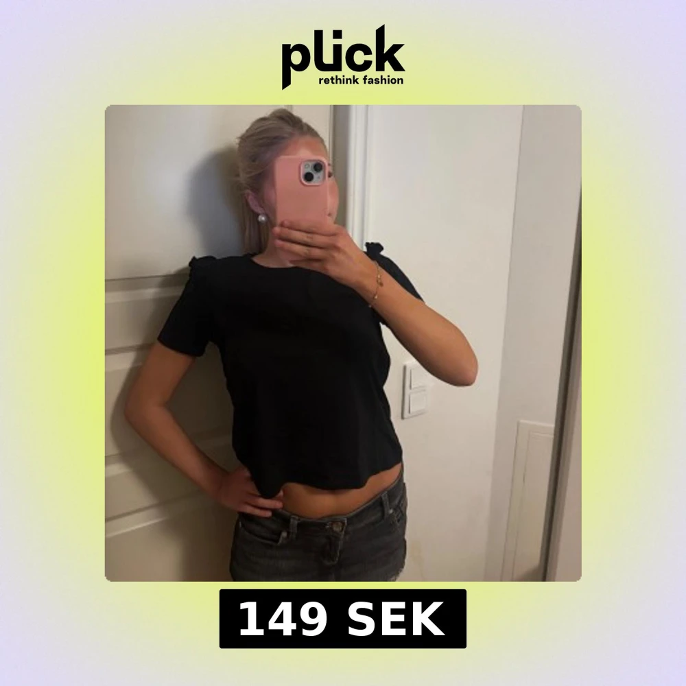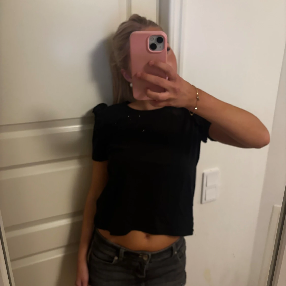 Säljer en svart topp med korta ärmar och volangdetaljer på axlarna. Storlek M men passar även S bra🩷
