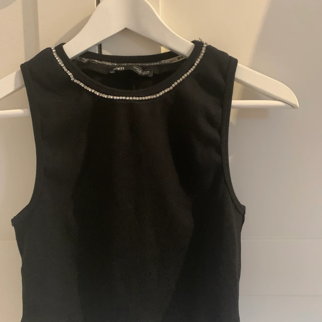 Svart Cropptopp från zara. Med diamanter runt halsen. Väldigt Kort på mig som är lång, 179 cm. Köparen står för frakten