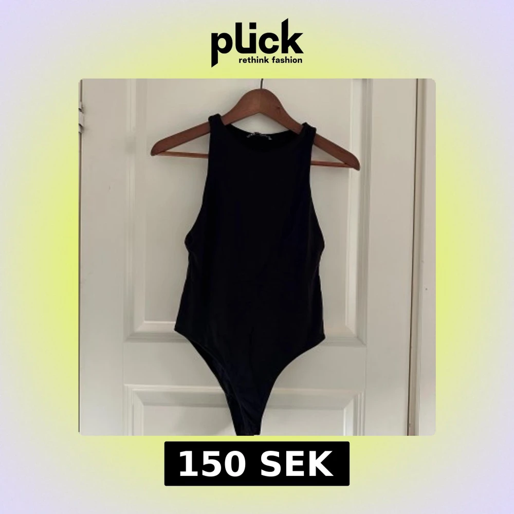 En svart, ärmlös bodysuit från Zara med rund halsringning och tight passform. Tillverkad i mjukt och stretchigt material som sitter snyggt på kroppen. Passar även S 🖤