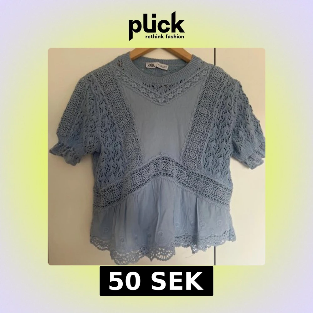 Supersöt ljusblå blus från Zara med korta ärmar och detaljerad spets. Blusen har rund hals, volangkant nedtill och broderad. Storlek s. Helt oandvänd bara testad.