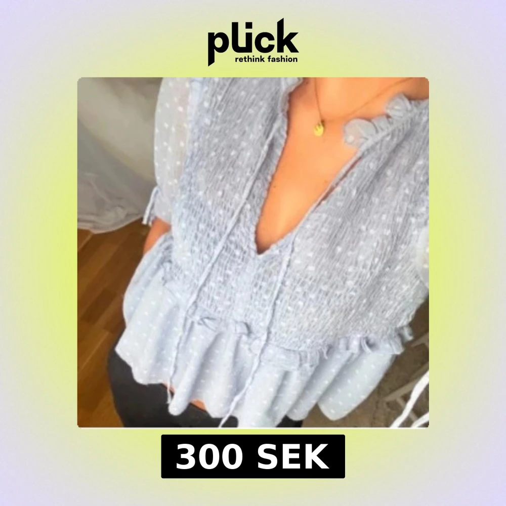 Ljusblå blus med volang