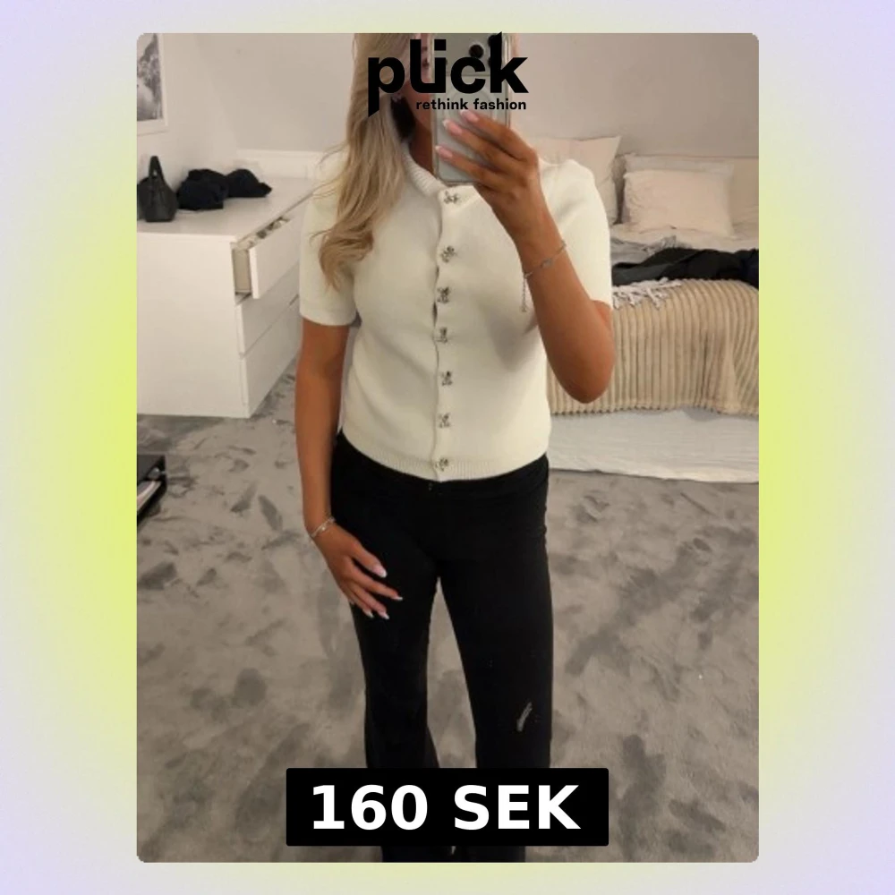 En jättefin kortarmad stickad tröja med rosett knappar från Zara. Den är i storlek M men är liten i storlek och skulle säga den är mer en xs/s