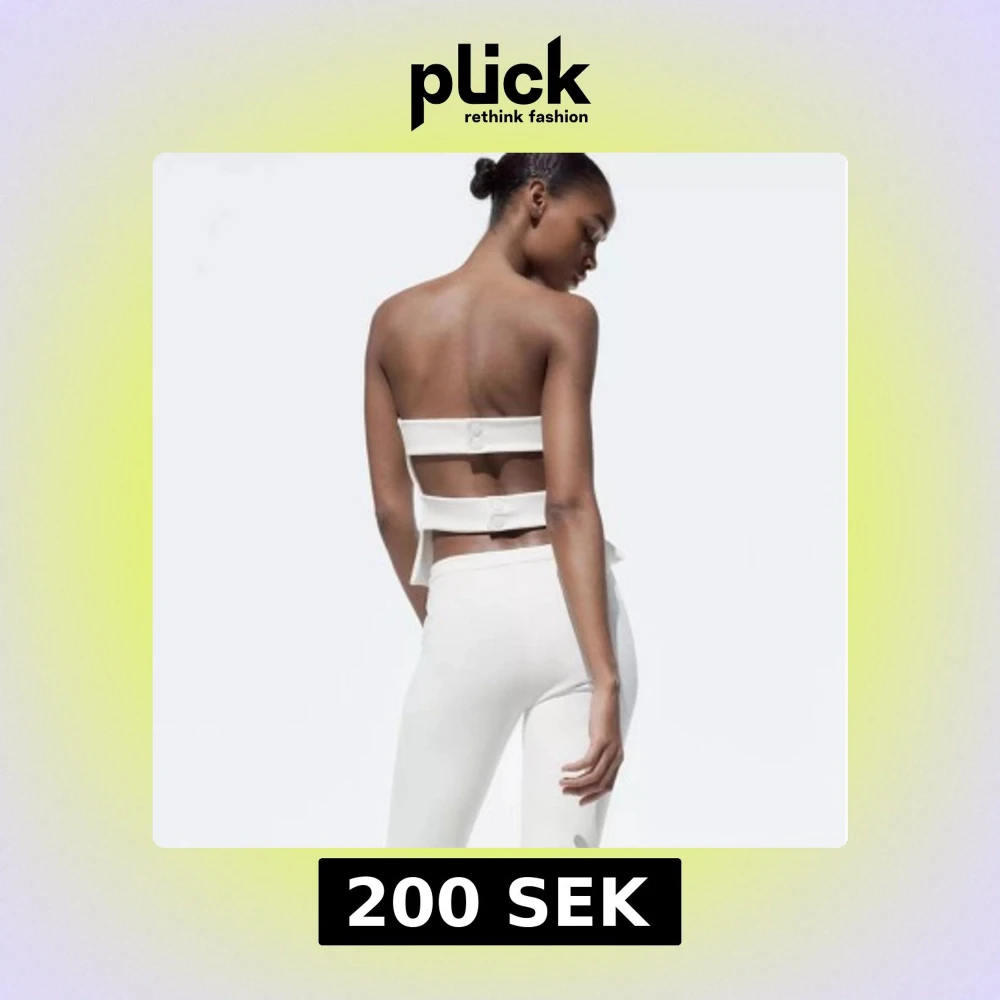 Snygg vit axelbandslös tubtopp med knäppning bak. Perfekt för en stilren look. Storlek L men sitter som s/m. Nypris 259kr