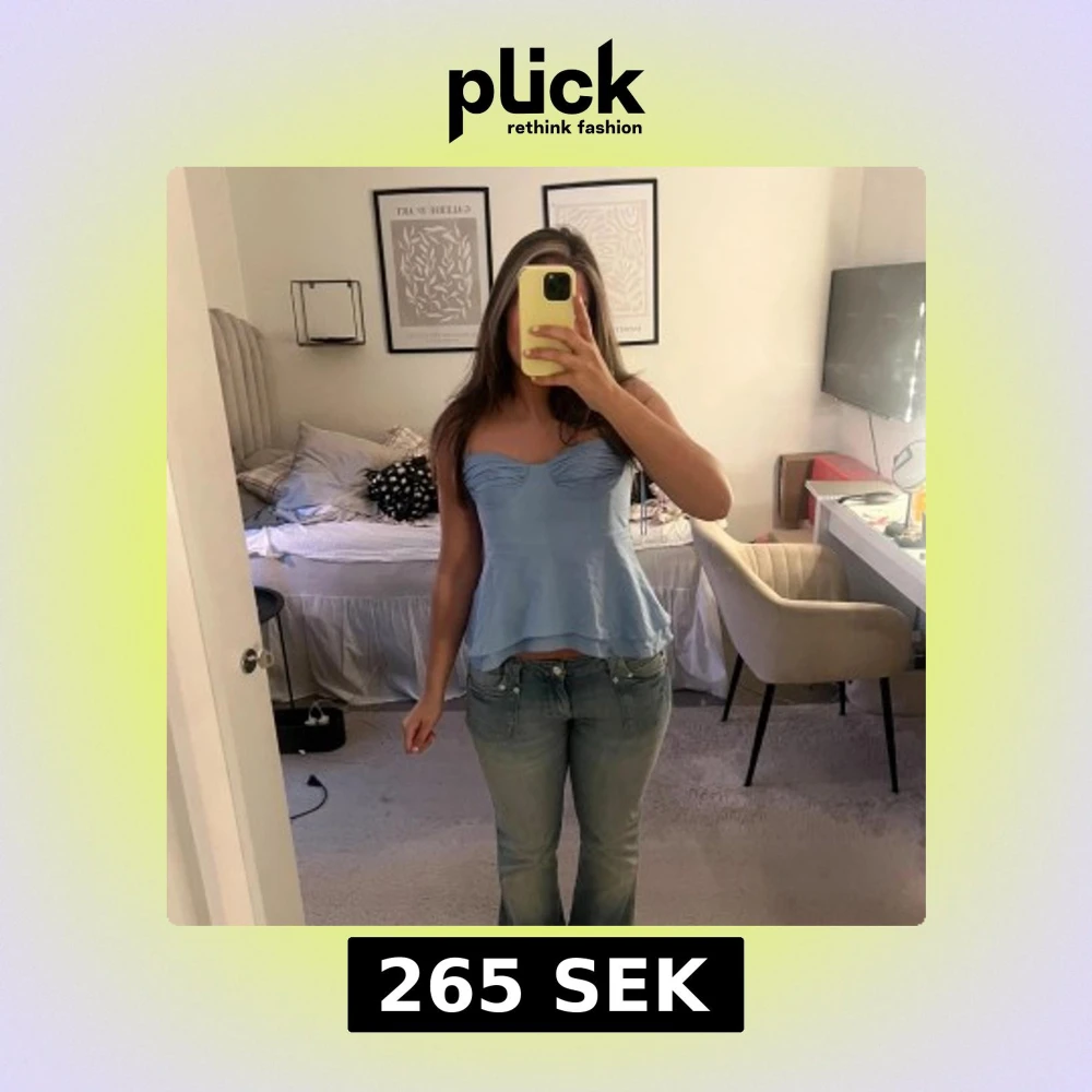 Säljer en ljusblå korsett-topp med söt, lätt utsvängd nederdel och snygga rynkade detaljer vid bysten. Toppen är ärmlös och har axelbandslös design, perfekt för dig som gillar en feminin och trendig look. Materialet känns lätt och luftigt.