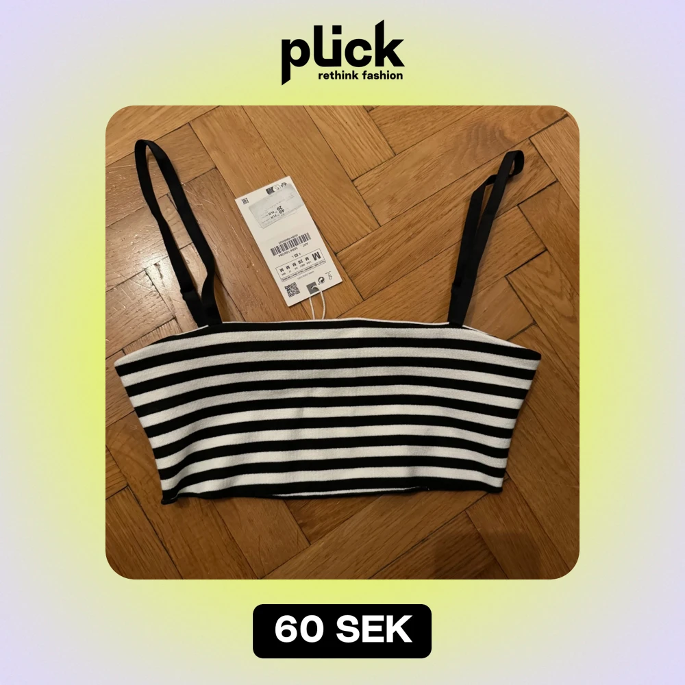 Snygg randig tubtopp från Zara i svart och vitt. Toppen är i nytt skick med etikett kvar. Den har justerbara axelband för bästa passform.