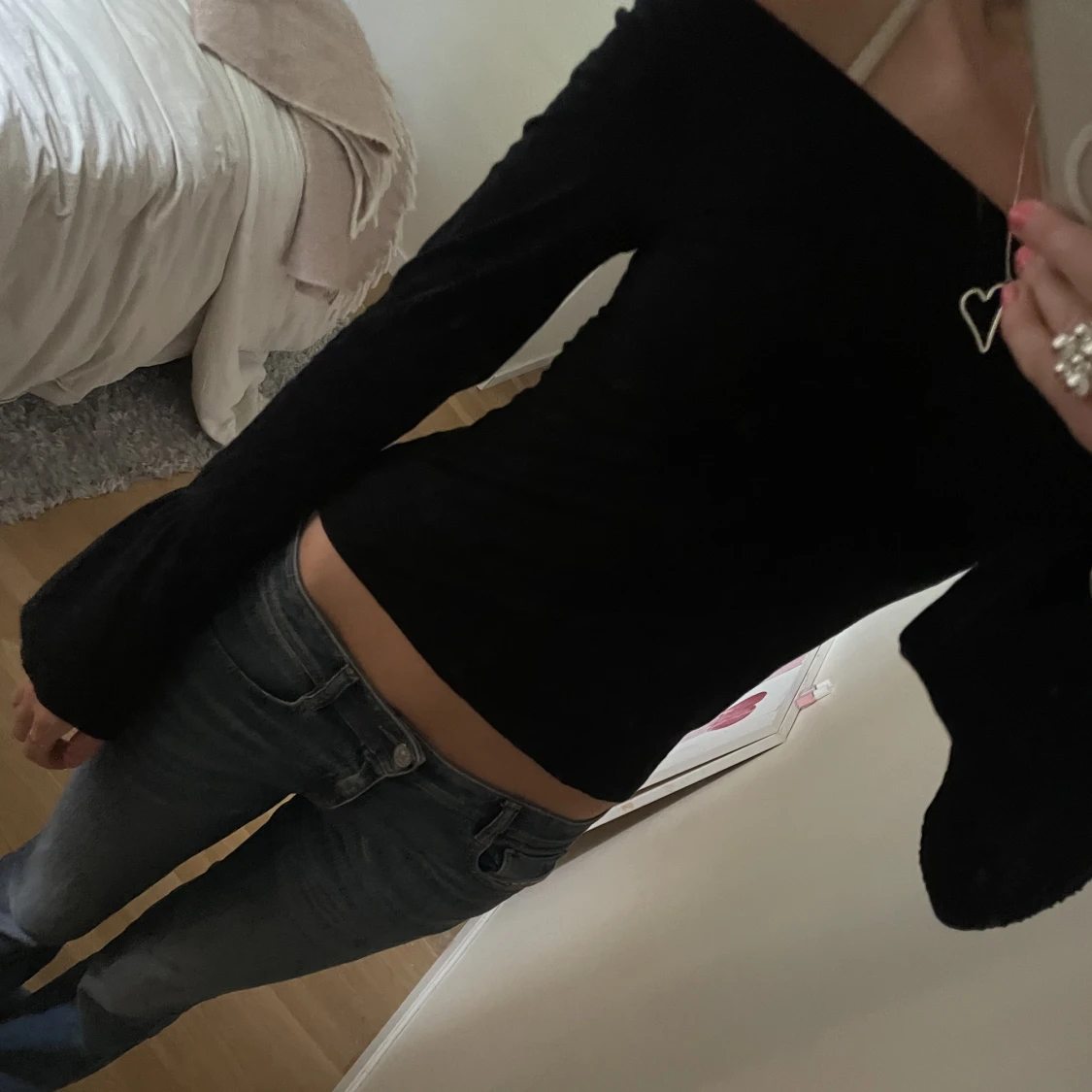 Cool svart långärmad tröja med utsvängda armar. Går att ha som off shoulder!💗