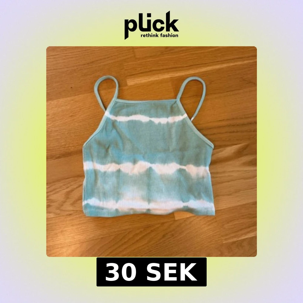 Säljer en fräsch turkos och vit ribbad linnetopp från Zara i storlek S. Toppen har smala axelband och ett coolt batikmönster. Materialet är mjukt och stretchigt, perfekt för varma dagar. Supersnygg att matcha med jeans eller shorts!