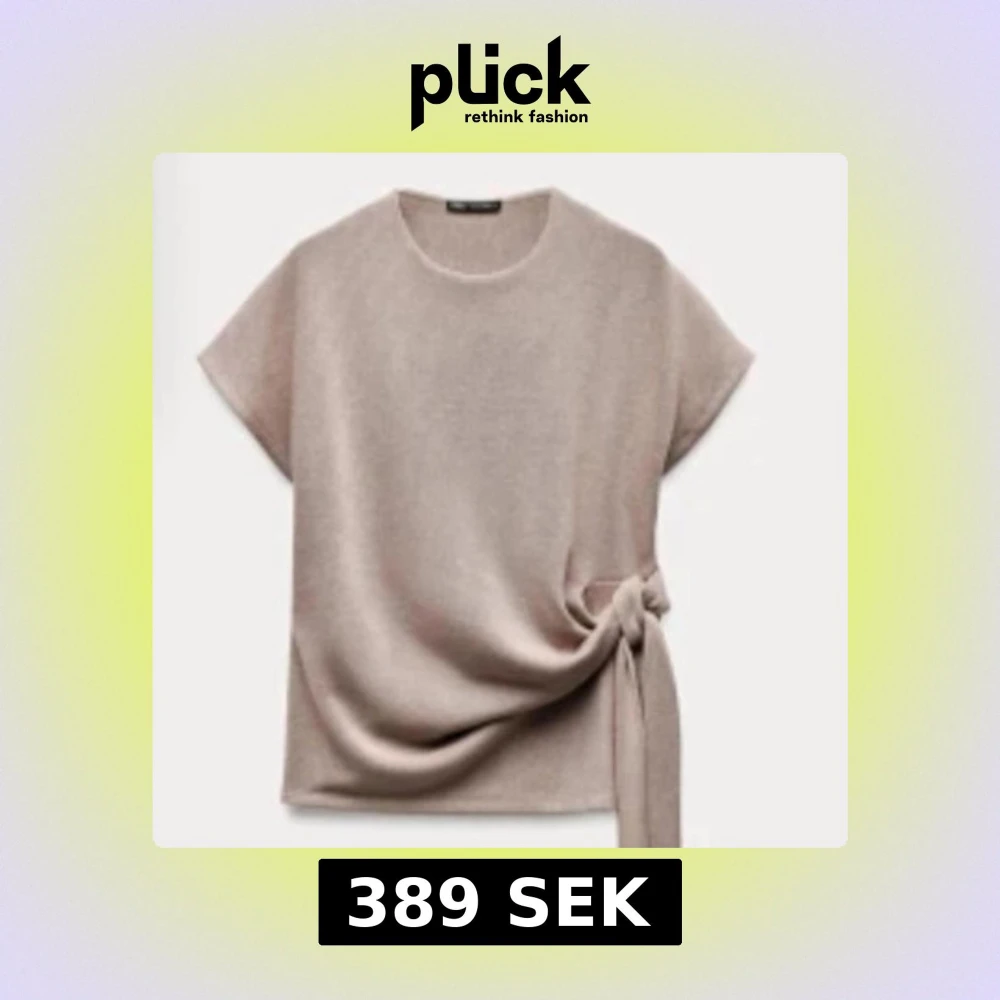 Säljer en stilren beige topp med korta ärmar och en snygg knytning i sidan. Perfekt för en chic och avslappnad look. Passar bra till både jeans och kjol.