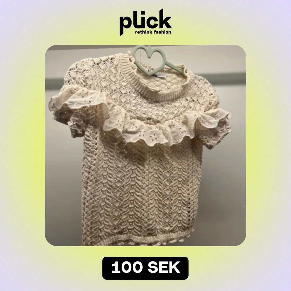 En fin virkad topp med volang i bra skick, säljer då den inte kommer till användning längre💓