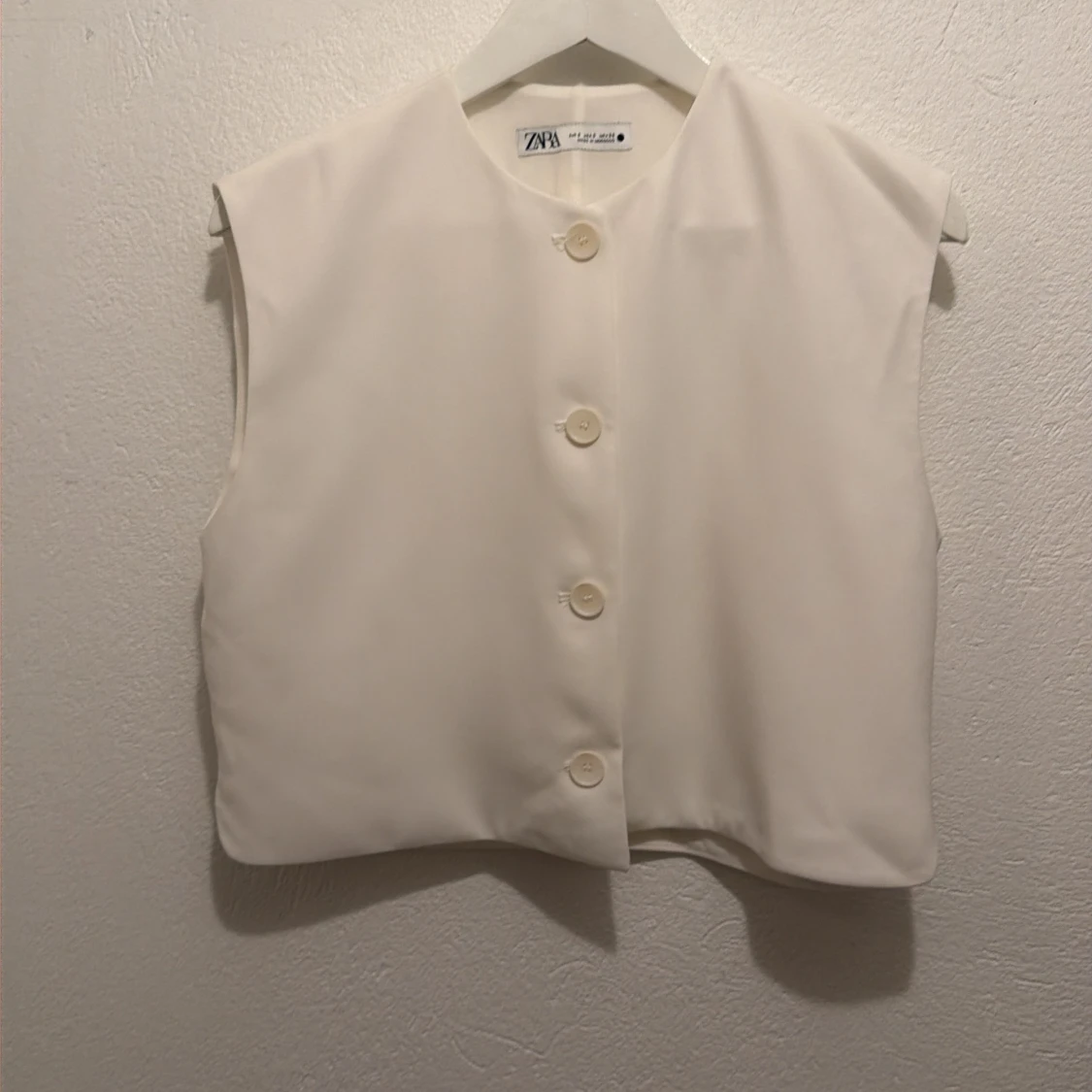 Stilren vit väst från ZARA med rak passform som är croppad. Använd fåtal ggr 💕💕