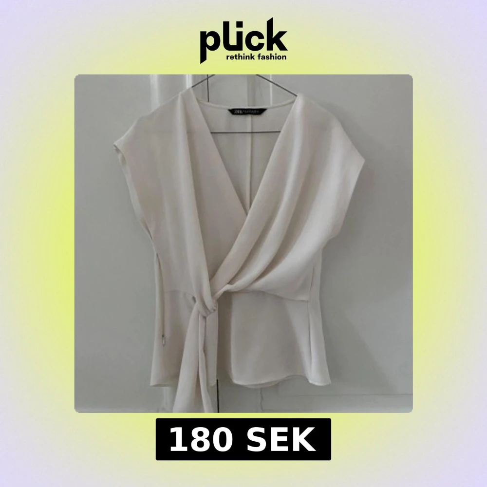 Snygg vit omlottopp från Zara med knytning i sidan. Toppen har en elegant v-ringning och är ärmlös, vilket gör den perfekt för varmare dagar. Materialet är mjukt och följsamt, vilket ger en skön passform.