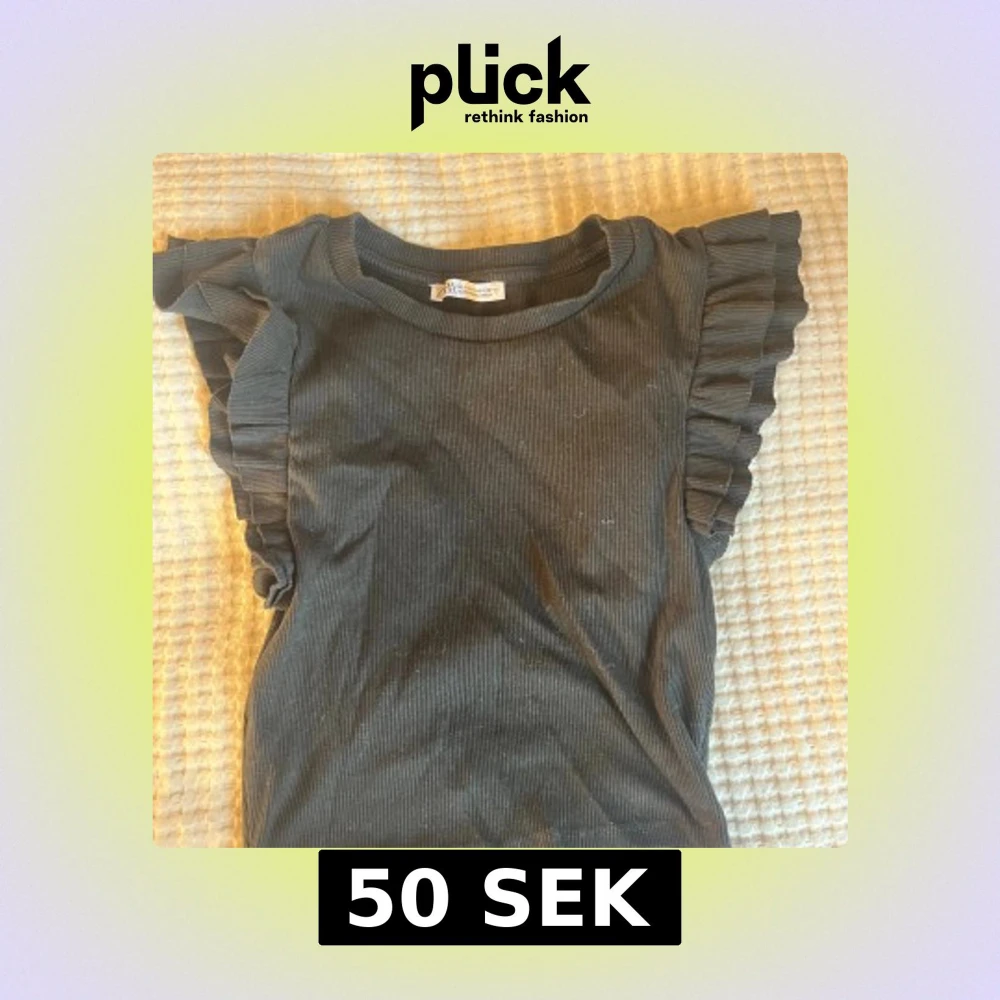 Svart ribbad croppad topp från Zara med korta volangärmar. Snygg och enkel modell som sitter tight och har rund halsringning.
