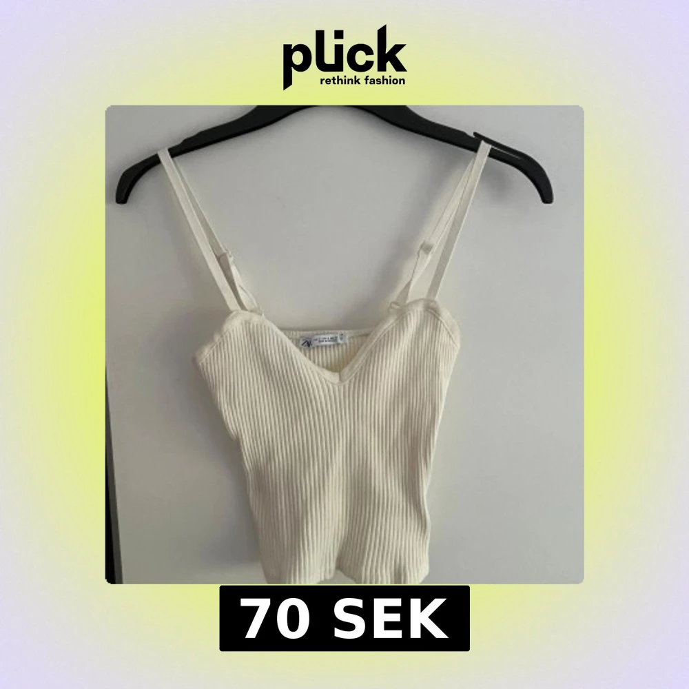 Supersnyggt vitt|creamfärgat ribbat linne från Zara med justerbara smala axelband och v-ringad hals. Perfekt för varma dagar och enkel att styla med jeans eller kjol.