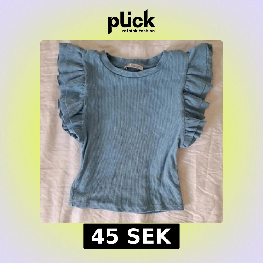 Supersöt ljusblå ribbad topp från Zara med volangdetaljer på axlarna. Toppen är ärmlös med breda volanger som ger en unik och trendig look.