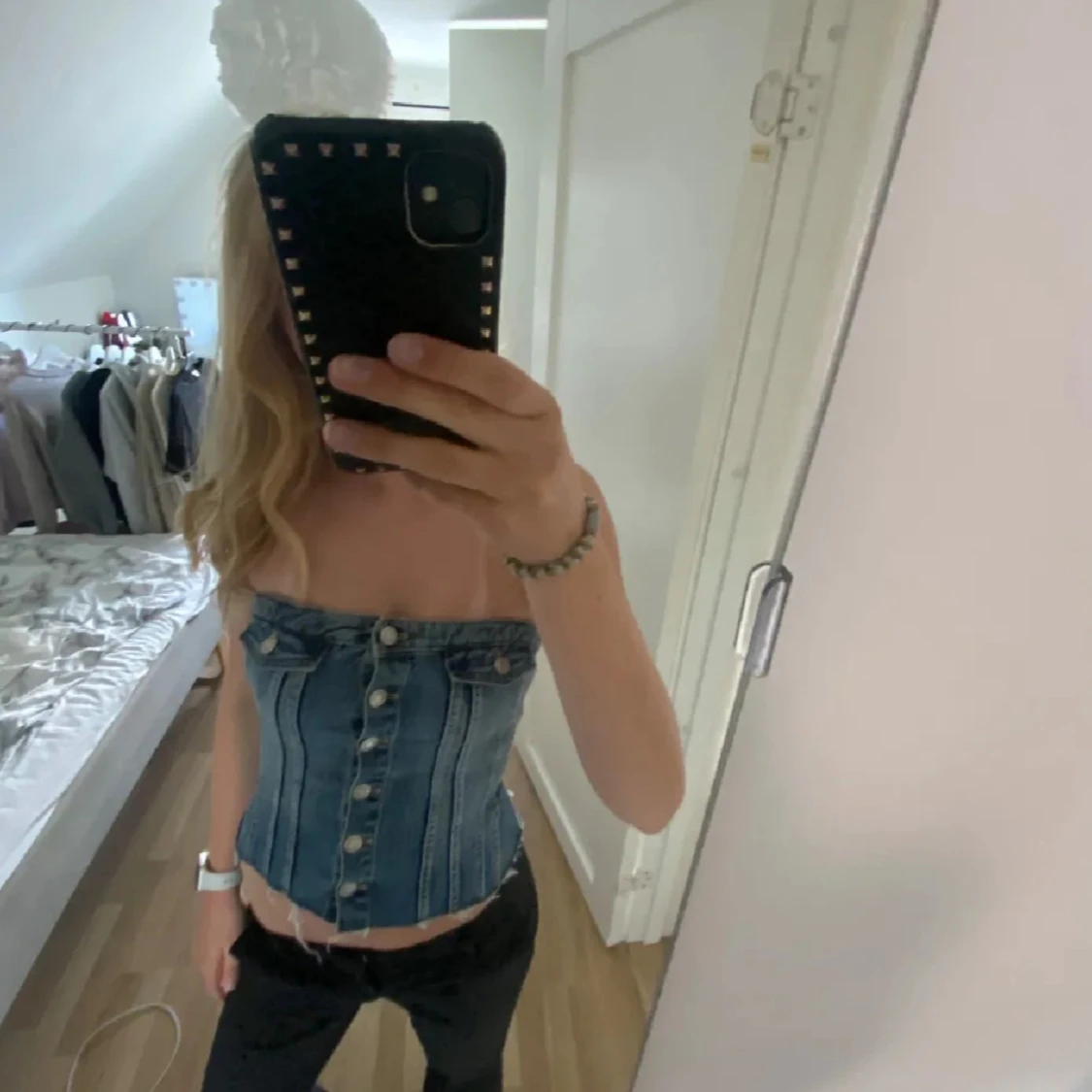 Säljer en snygg jeans topp från Zara som är riktigt snygg och i jättebra skick