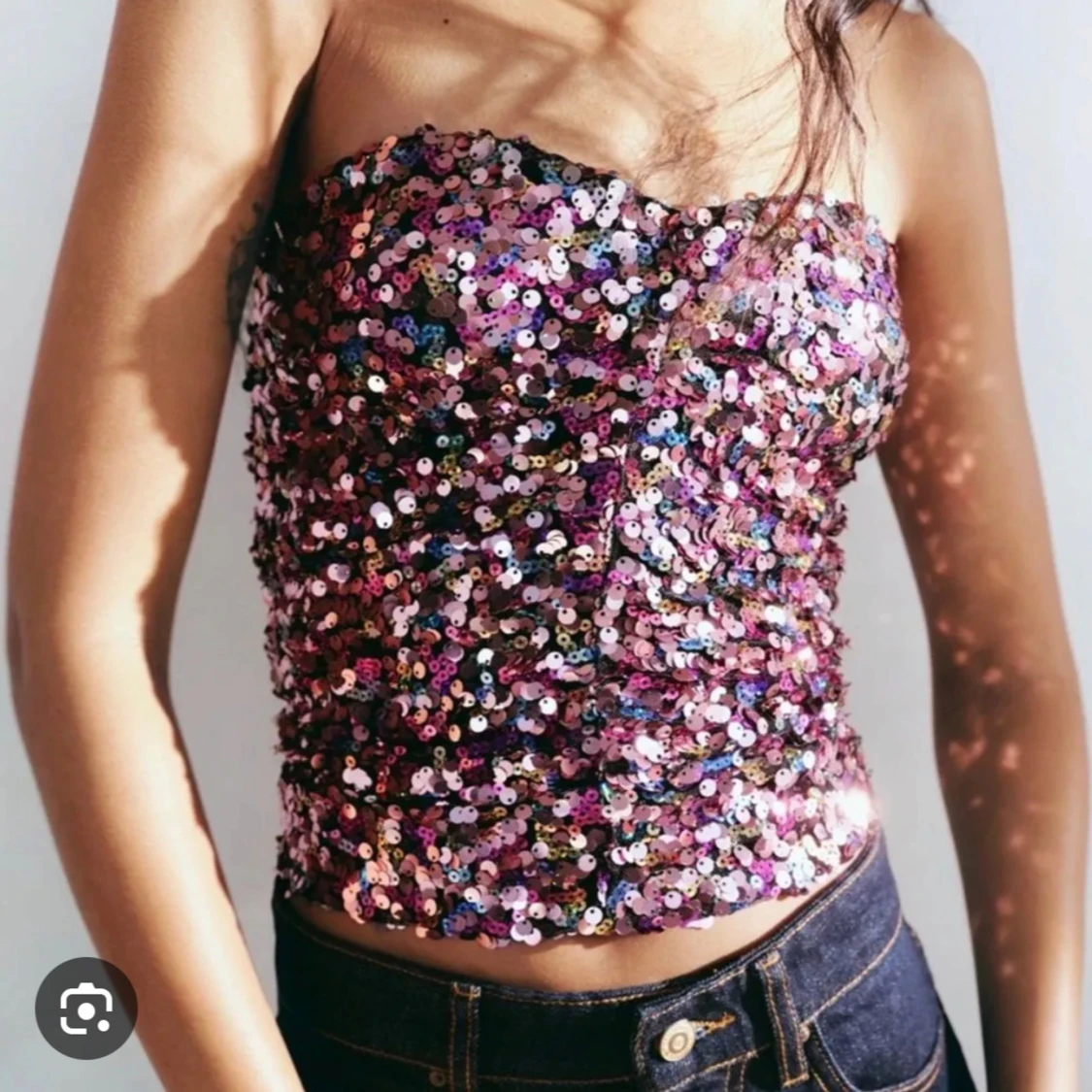 Snygg och glittrig tubtopp täckt med färgglada paljetter. Perfekt för nyår✨✨
