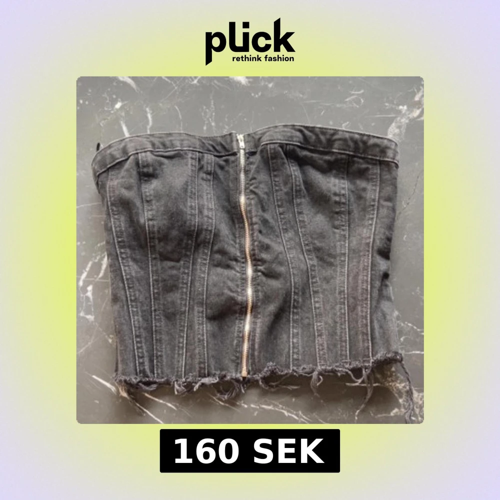 Från Zara. Cool svart korsettopp i jeansmaterial med dragkedja framtill och rå, fransig nederkant. Baksidan har smock för extra stretch och passform. Perfekt för en edgy stil.