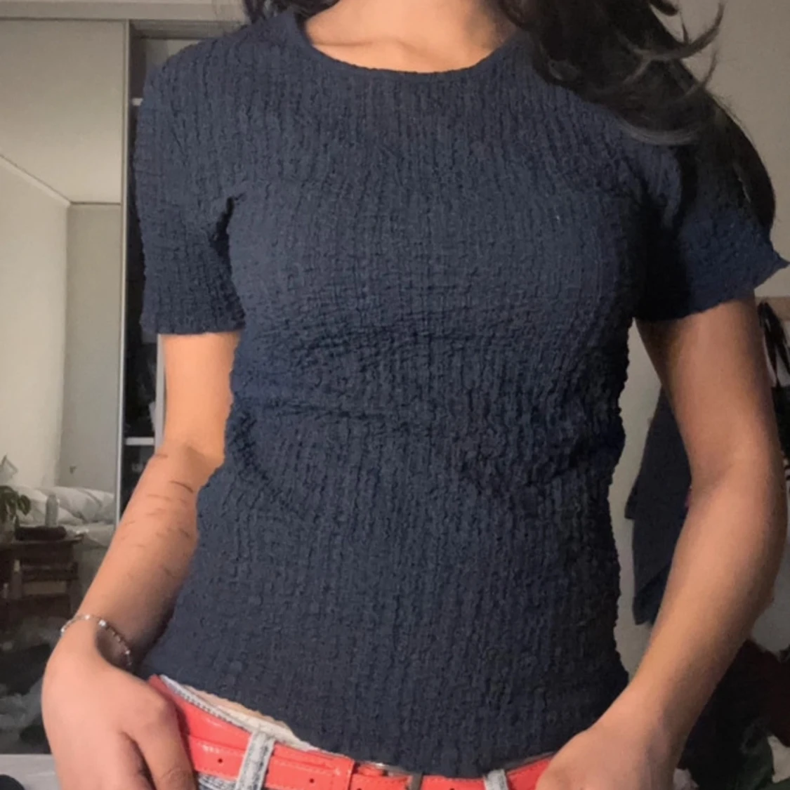 Säljer en mörkblå ribbad topp i polyester och elastan. Toppen har korta ärmar och en tight passform, perfekt för en stilren look. Den är enkel och bekväm att bära. Ny med prislapp kvar💙