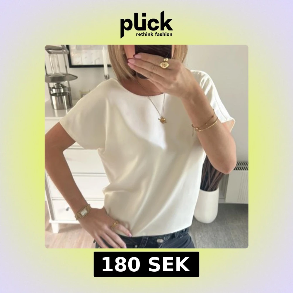 Säljer en vit omlottopp från Zara i storlek S. Toppen har korta ärmar, rund hals och snygg öppen rygg med knyt bak. Materialet är mjukt och har en lätt glansig finish som ger en lyxig känsla. Perfekt att styla med jeans eller kjol för en trendig look.