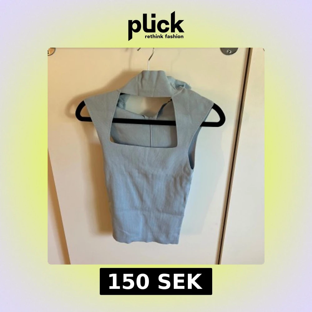 Snygg ljusblå linnetopp med fyrkantig urringning och breda axelband. Toppen är ärmlös och har en stilren, minimalistisk design som passar perfekt till jeans eller kjol. Storlek S