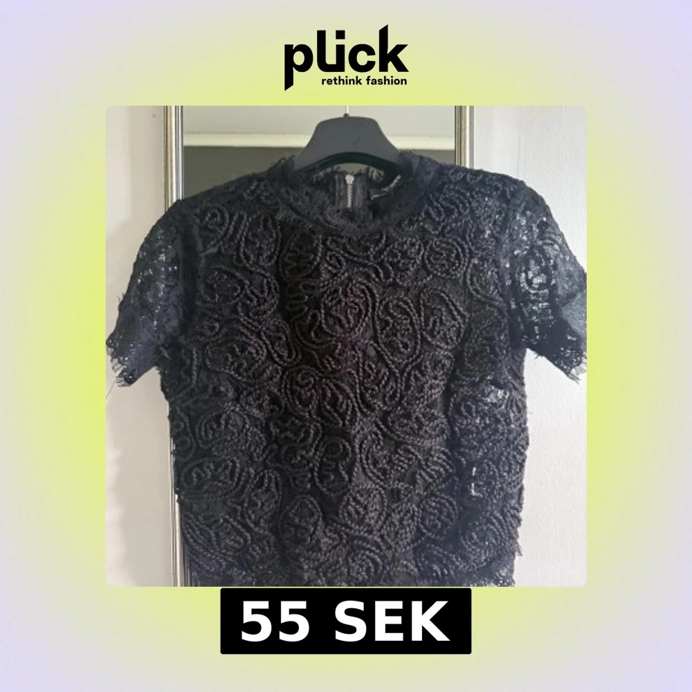 Unik svart blus med korta ärmar i spets och broderade detaljer framtill. Baksidan har en snygg dragkedja som ger en cool touch. Perfekt för dig som vill sticka ut med en elegant men edgy look.
