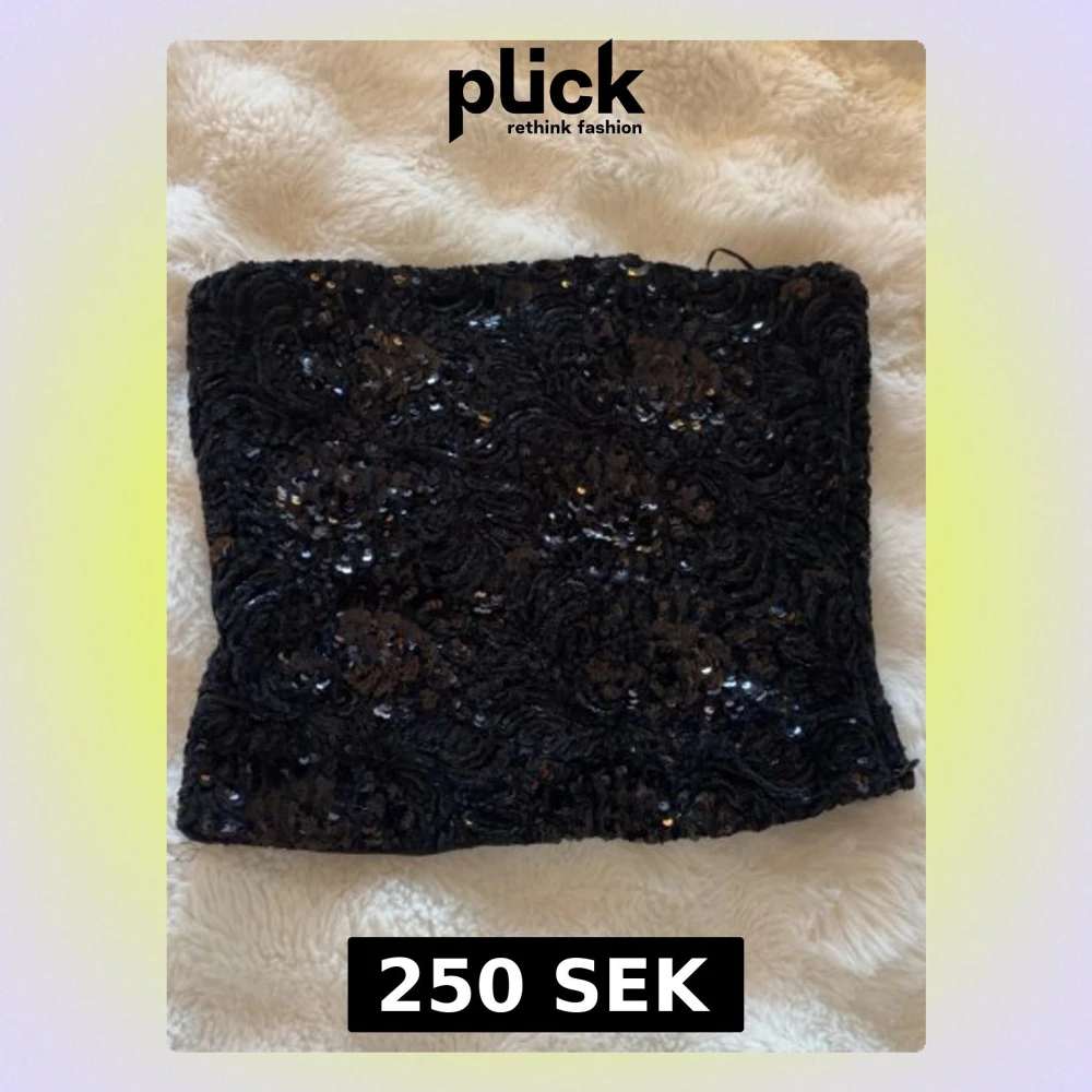 Säljer en svart tubtopp från Zara, täckt med glittriga paljetter för en extra festlig look. Toppen är axelbandslös och har en croppad passform. Perfekt till kvällens outfit när du vill sticka ut lite extra. Aldrig använd med prislapp kvar🩷